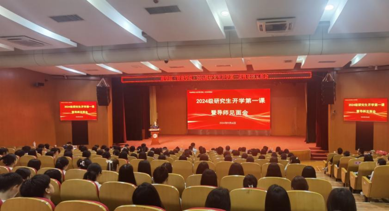 (管理学院)在长安校区图书馆满天星学术报告厅举行了2024级研究生开学第一课暨导师见面会。校党委委员、副校长、公共管理一级学科带头人张荣刚教授、学院党政领导班子成员、全体硕士生导师及2024级所有研究生参加,会议由研究生辅导员李章星老师主持。
