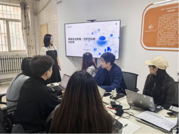 活动中,张涛涛老师从当前大学生面临的网络环境切入,系统梳理了个人信息泄露、网络诈骗与恶意软件攻击等常见网络威胁类型。结合高校发生的真实案例,深入剖析了各类网络陷阱的识别方法与防范要点。她强调,数字化时代,网络安全意识已成为每位学生的必修课。唯有主动学习、时刻警惕,才能在虚拟世界中构筑起有效的个人防护屏障。交流环节,同学们踊跃发言,分享自己在使用网络过程中遇到的困惑与防范经验。