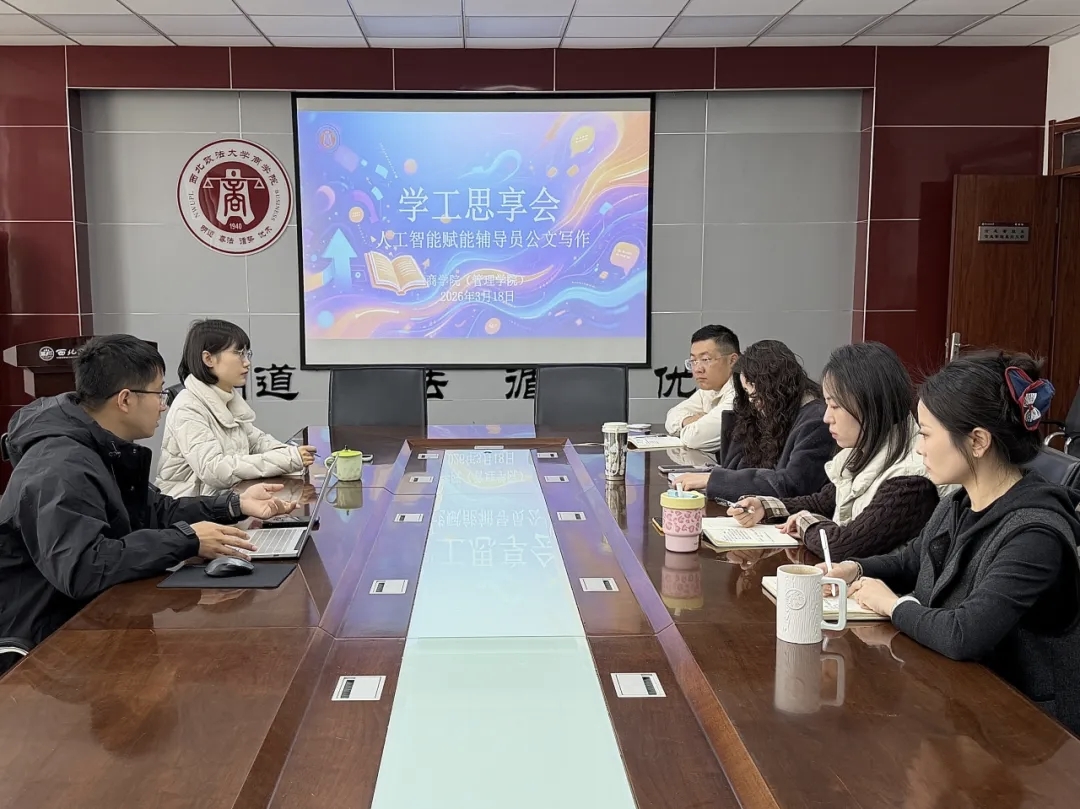 (管理学院)第一期“学工思享会”在学院会议室举行。作为辅导员队伍建设的一次创新尝试,本期活动聚焦“人工智能与辅导员公文写作”,学院党委副书记巩飞、辅导员梁菁、张琪、蔡冰冰、安万磊、熊珂参加活动,全体辅导员围坐一堂,展开深度交流。