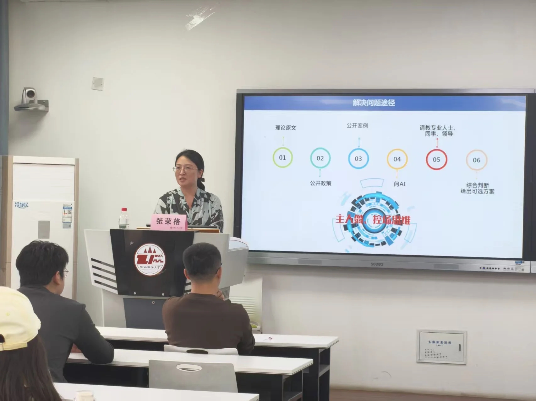 分享会上,张荣格以“职场路径经验分享交流”为题,结合自身从校园到职场、从专业到管理、从企业实务到社会治理的跨越式成长轨迹,围绕职业规划、能力沉淀与价值选择三个维度展开深度分享。她勉励学弟学妹们要珍惜在校时光,夯实专业基础,同时注重培养综合素质和跨领域学习能力;在职业选择上既要仰望星空,也要脚踏实地,善于从长期主义视角规划个人发展路径。她还结合参与企业上市、公司治理及商事调解等实务经历,生动阐释了西法大“严谨、求实、文明、公正”校训精神在职场中的实践价值。