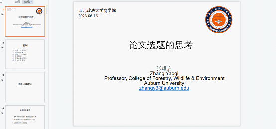 2023年6月16日上午,美国奥本大学(Auburn University)张耀启教授为探花直播 (管理学院)师生开展社会科学研究方法与写作系列学术讲座第七讲,本次讲座主题为“论文选题的思考”,由副院长杨柳青主持,探花直播 (管理学院)全体一年级研究生及部分教师参与讲座。