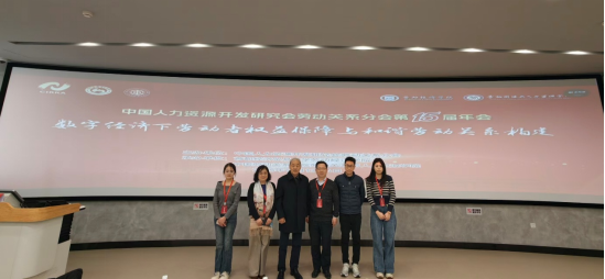 2025年12月13日,中国人力资源开发研究会劳动关系分会第十五届年会在北京举办。本次年会由中国人力资源开发研究会劳动关系分会和首都经济贸易大学主办,以“数字经济下劳动者权益保障与和谐劳动关系构建”为主题,来自全国高等院校和科研院所共300余人的专家学者参加会议。探花直播 杨柳青副院长、崔健老师、杜鹏翾老师、硕士研究生马晓丽、李怡雯应邀参加会议。